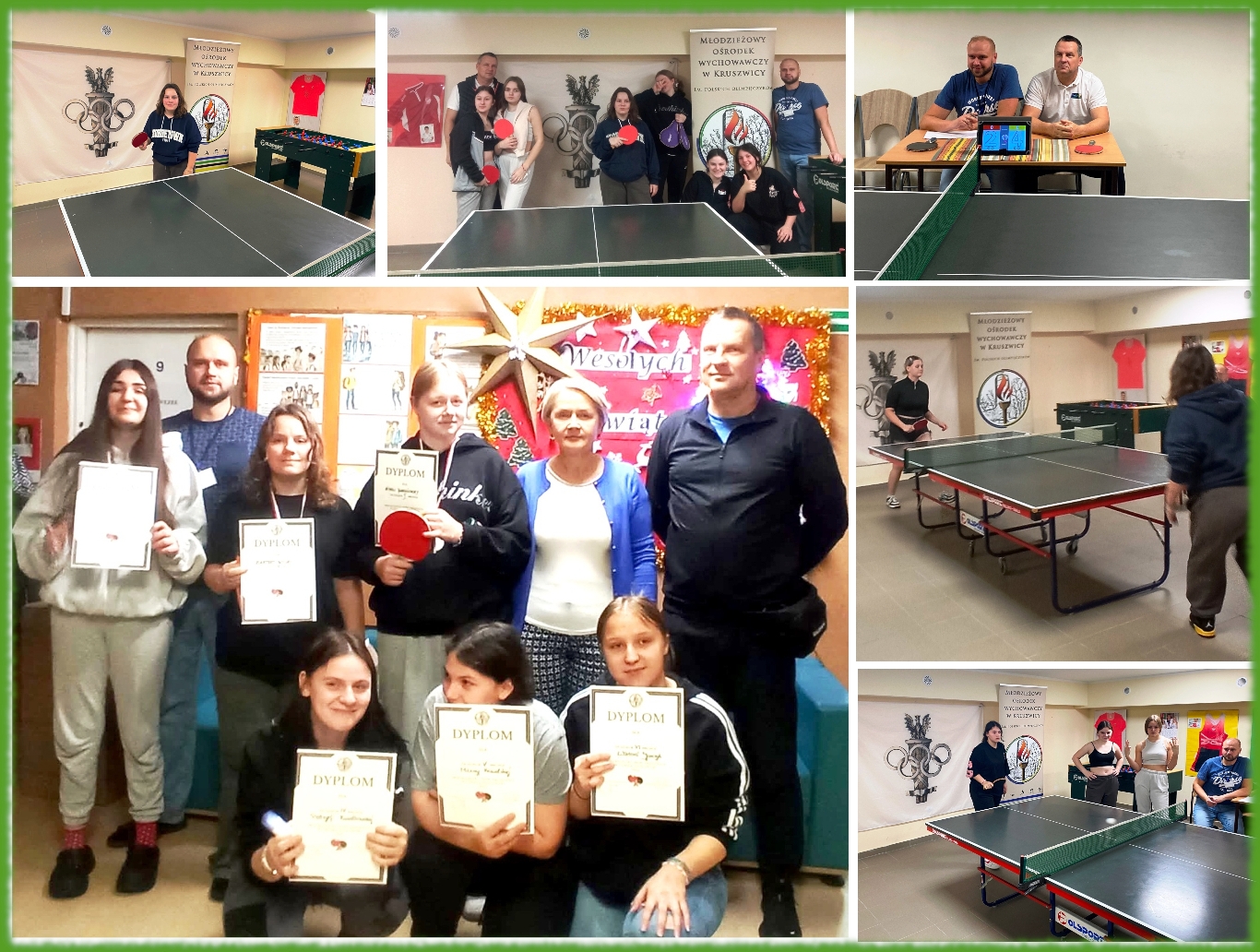 22.11.2025 w Młodzieżowym Ośrodku Wychowawczym odbyły się „Mistrzostwa Szkoły w Tenisie Stołowym”. Do zawodów zgłosiło się 16 uczennic, które rywalizowały między sobą o tytuł „Najlepszej tenisistki ośrodka”. Organizacją zawodów zajęli się nauczyciele Robert Januszek oraz Rafał Piaskowski. Dla najlepszych wychowanek organizator przygotował nagrody, dyplomy oraz medale.